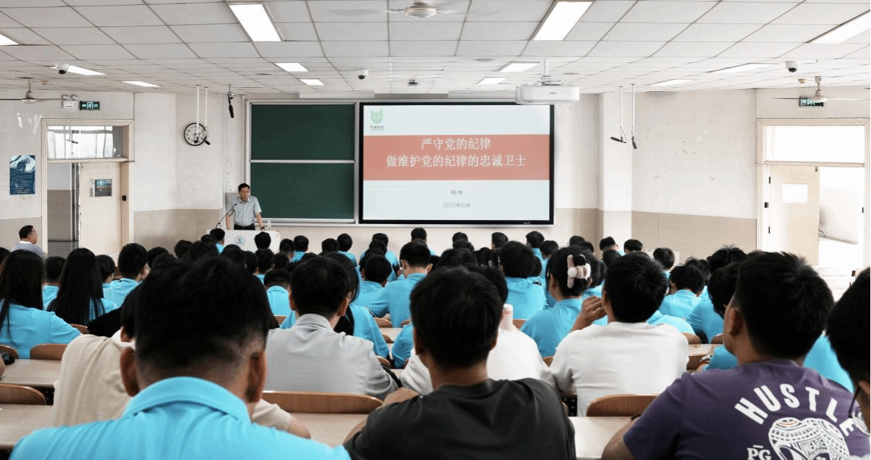 在11教5301开展2024届毕业生党员“青廉课堂”党纪专题党课。党课由学院党委书记程涛主讲,学院党委副书记孙成政、团委书记薛浩、辅导员朱冬青及全体毕业生党员参加。