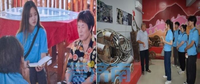 90年代的济南市历城区锦锈川乡金刚纂村干部群众,为了自己与子孙后代的幸福生活,战天斗志、开山劈岭,留下了一个比“愚公移山”还要感人的故事。活动前期,成员们来到金钢纂村后在马广业书记的带领下,参观了村史馆,听马广业讲解修路时的工具、机器,观看了村民们劈山修路的纪录片。通过与马广业、炮手、老党员的沟通了解到,马广业带领群众把小山村发展成为一个集农业、林业、旅游业发展于一体的省级示范村,带动了居民的人均收入,使老百姓发家致富。