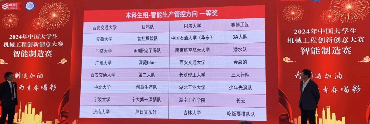 “智能制造工程”专业致力于智能制造领域人才培养,自2020年首次招生以来,一直秉承“以练促赛”“以赛促学”培养理念。学院领导高度重视学生创新能力培养,积极遴选优秀教师精心指导,院团委广泛动员学生踊跃参与,工程训练中心充分发挥创新实训基地作用。在智能制造师生的共同努力下,参赛队员团结协作、勇于创新、不断挑战自我,在285所高校、1927支代表队参与的省赛选拔赛中披荆斩棘、脱颖而出,共获得15项省级奖项,6支队伍成功晋级全国总决赛。在全国总决赛中,再次与126所高校、261支参赛队伍展开激烈角逐,最终斩获一等奖1项、二等奖4项、三等奖3项共计8项全国奖的骄人战绩,其中赵秀霞老师指导的由智造2022级张宇轩、龚钰琳、机工2023级刘衡三位同学组建的旭日又东升队勇夺全国一等奖,实现了我校在此项赛事中全国一等奖的突破!