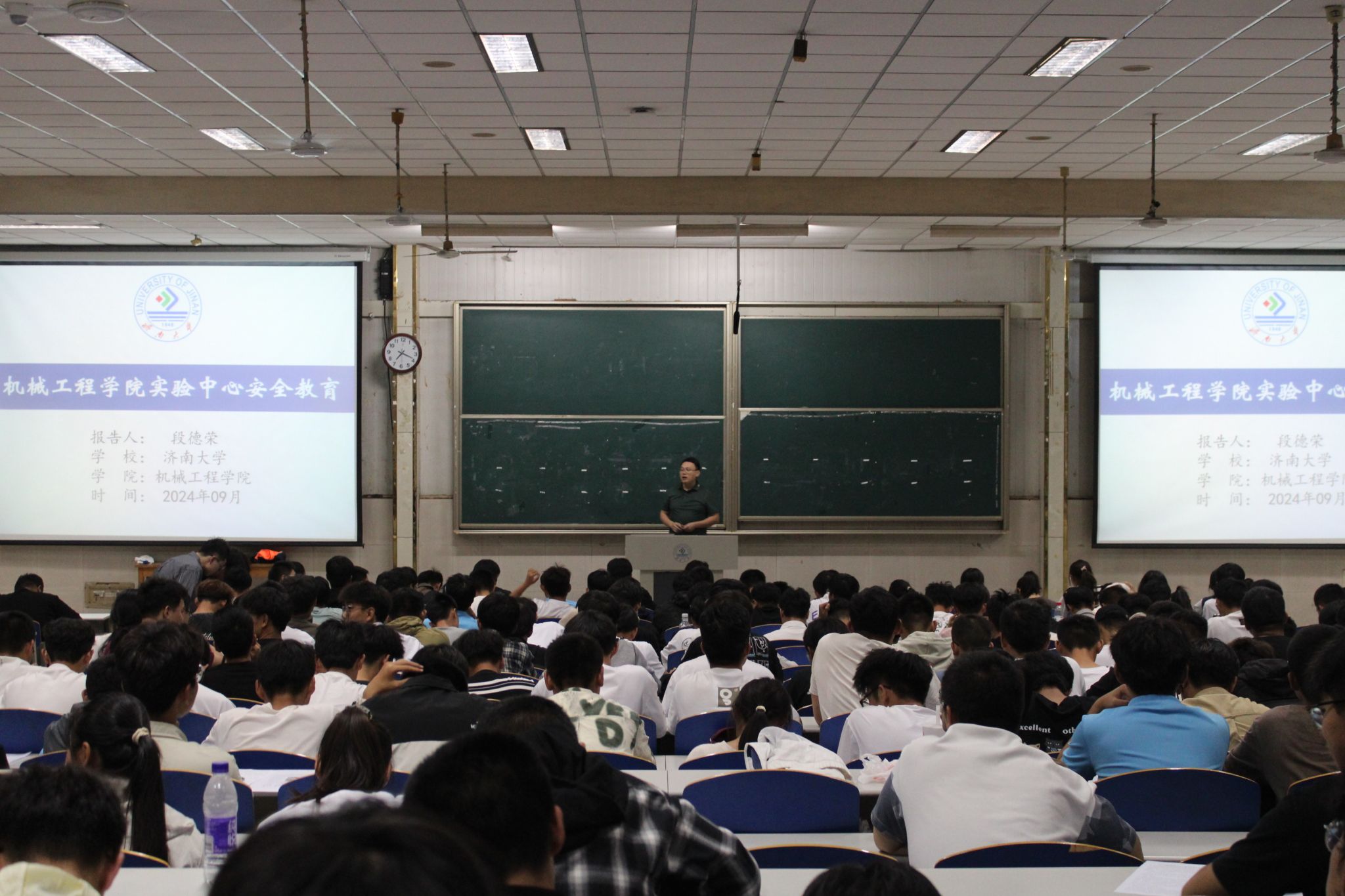 于9月23日在星硕教室开展实验中心安全教育,实验中心负责人段德荣老师主讲,2024级新生参与。
