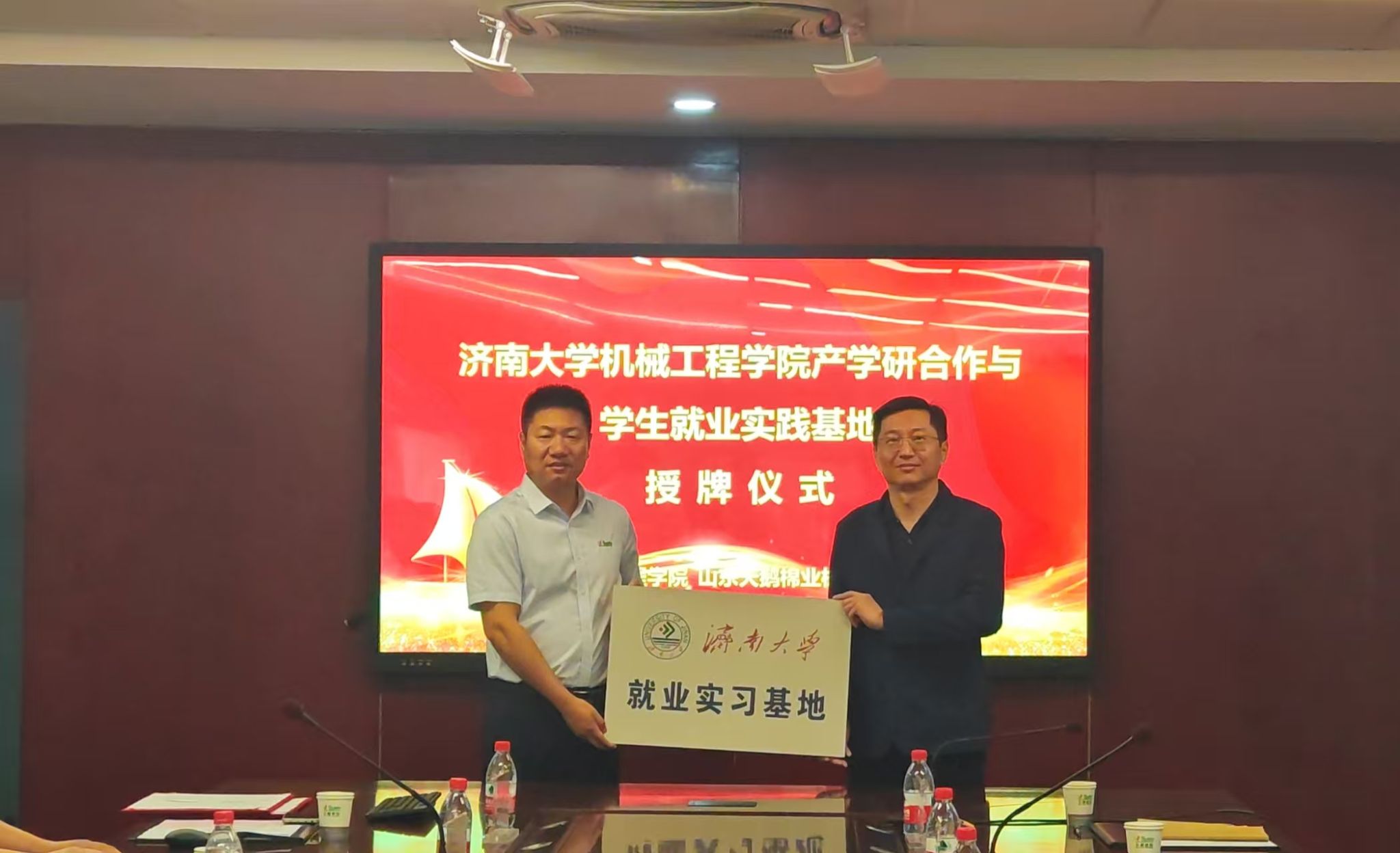 就业实习基地”揭牌。山东天鹅棉业机械股份有限公司董事长、总经理王新亭及双方相关人员参加了活动。