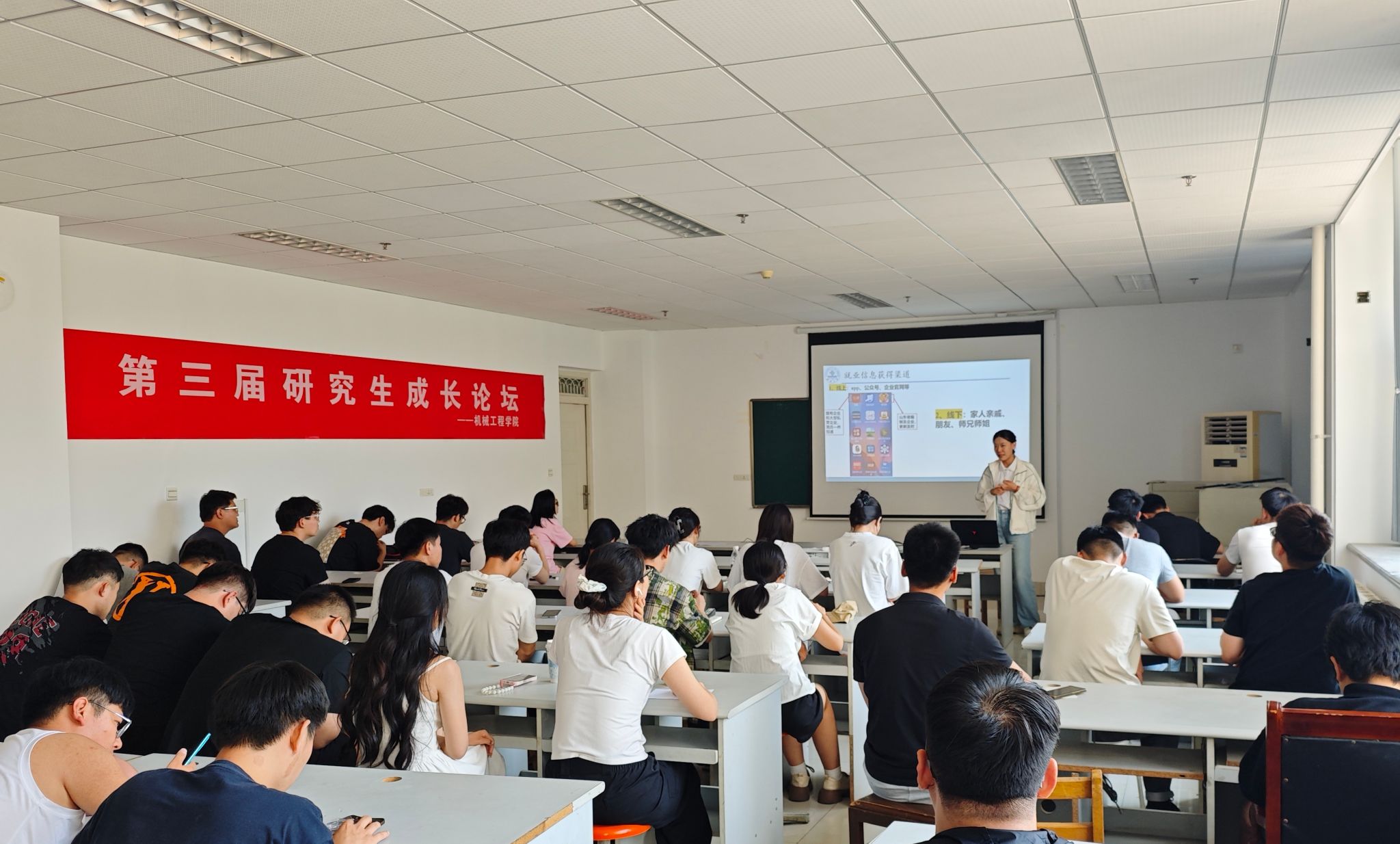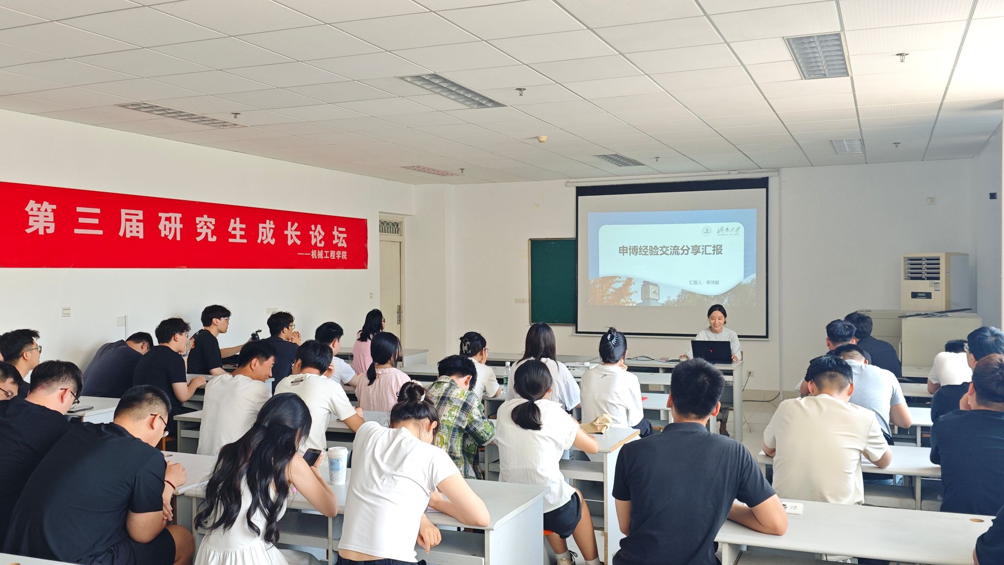 于6月17日在机械楼A207举办“第三届研究生成长论坛”。此次论坛邀请我院22级在申博、专利申报、考编、就业等领域取得突出成绩的六位优秀毕业生作为主讲人进行经验分享,部分在校研究生积极参会并与主讲人进行了交流互动。