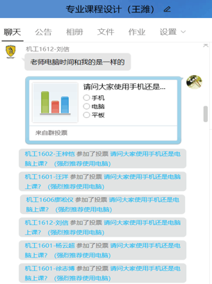 王潍老师,不仅为全校师生做了《基于课堂派构建有效在线师生互动》的讲座,对师生互动提出了基本策略和考核方法,也将自己马上开课的《机械设计学》、《专业课程设计》两门课程的准备在系部和学院进行了分享;同时他提前用学生感兴趣的投票方式测试了学生在线授课的准备情况,再根据投票结果提前进行网络卡顿等预案。