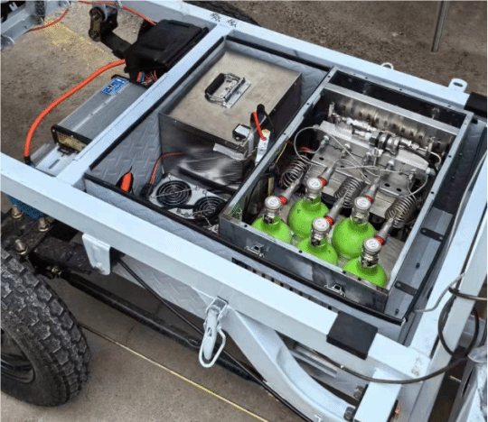 氢能团队和北京京豚科技有限公司联合开发的氢燃料电池快递三轮车在主校区进行了连续七天的性能测试。快递三轮车设计最高时速45 km/h,采用1.0 kW氢燃料电池系统,满载情况下单次氢能续航超过120 km。氢燃料电池快递三轮车采用低压合金储氢技术提供氢气,优化了充放氢系统,并且可以进行氢瓶的快速更换;动力系统采用氢燃料电池和钠离子电池的协同供电,解决了续航里程的担忧与充电安全风险问题。氢燃料电池快递三轮车在未来将大有作为,氢能交通工具也有望与其他新能源交通工具一道,构筑城乡发展的运力网络。